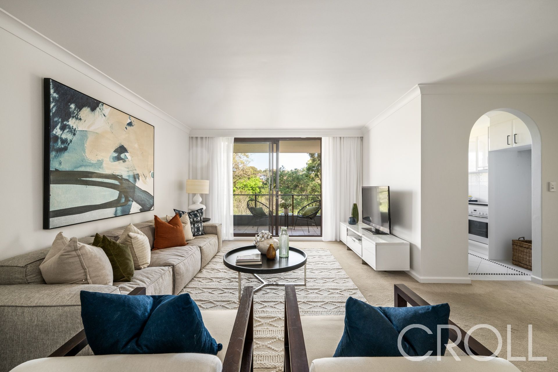 This newly refreshed apartment presents a contemporary neutral palette with new paint, modern updated lighting and electricals and refined fittings and finishes throughout. You will enjoy a generous floor plan with spacious, well-proportioned rooms all flooded with natural light and warmth. The well-thought-out flow includes a large open-plan living with a separate dining space which seamlessly adjoins the covered balcony overlooking established gardens and grounds. The apartment is in an elevated position in a low-rise block at the quiet end of the complex, located down a private driveway/cul-de-sac which opens out to reveal impressive, tranquil grounds. Sitting on the fringe of trendy Cammeray village and only moments to Crows Nest and Neutral Bay commercial centres, you will be spoilt for local services and amenities. The highly desirable complex offers convenient north and south freeway access and is moments to