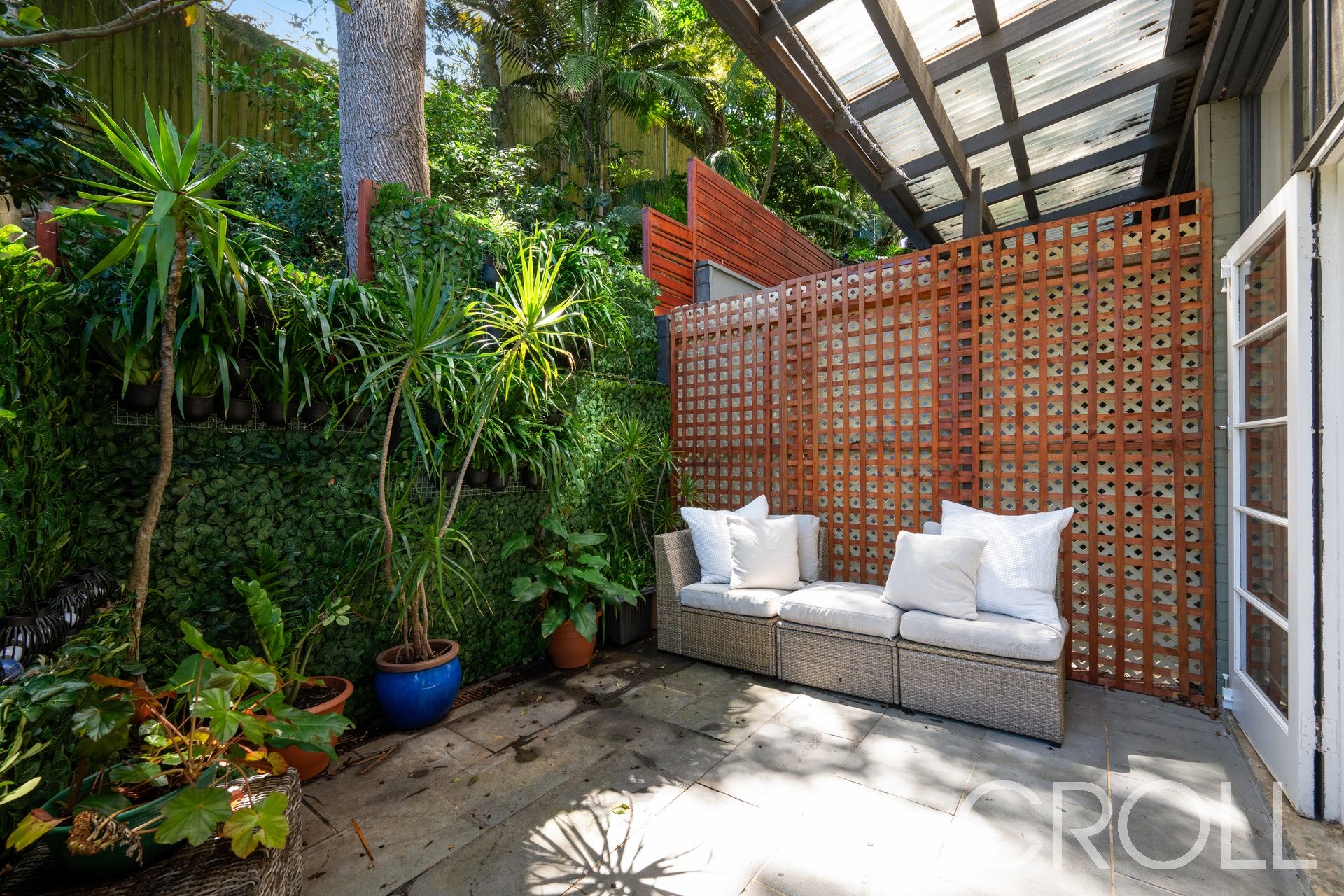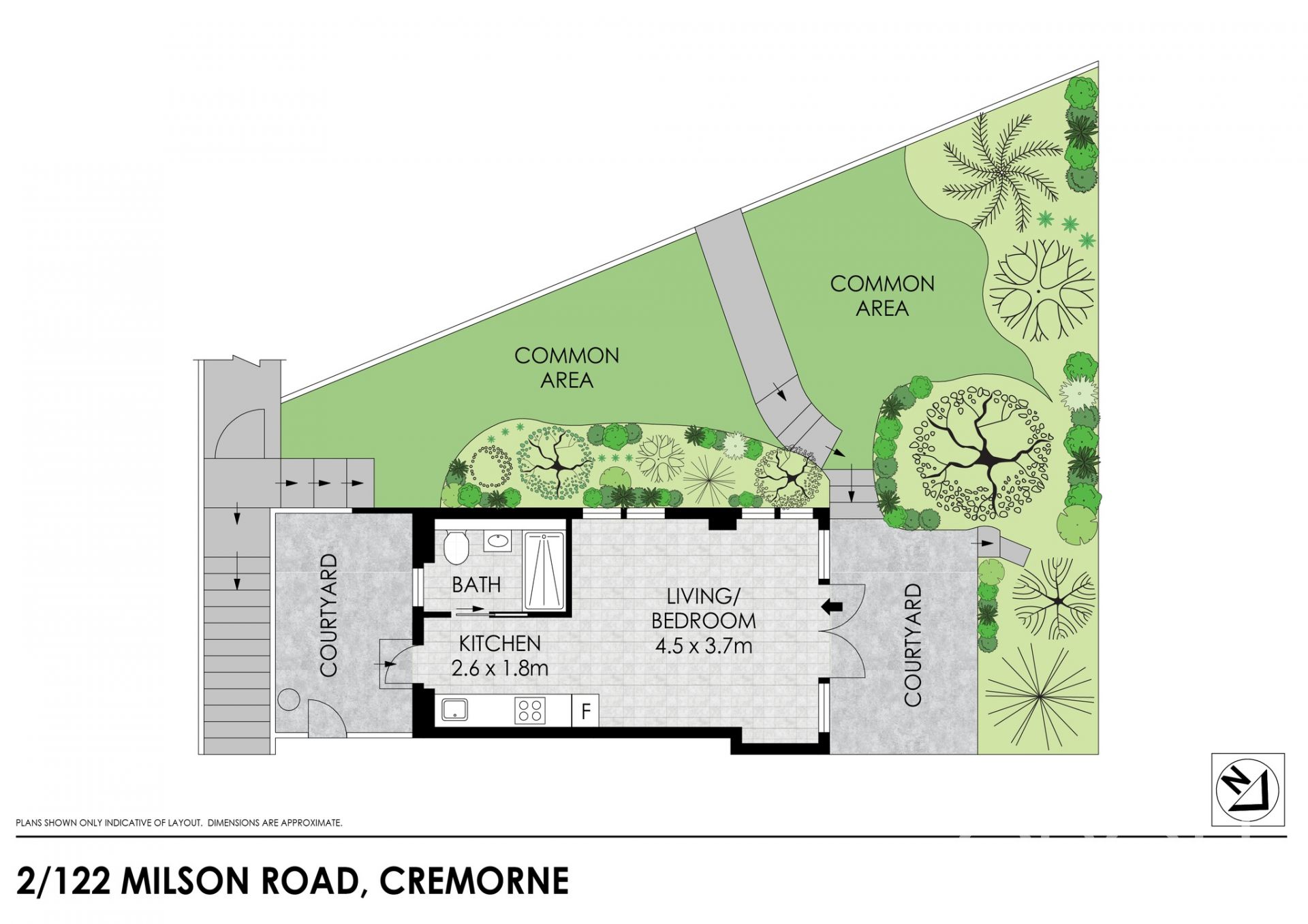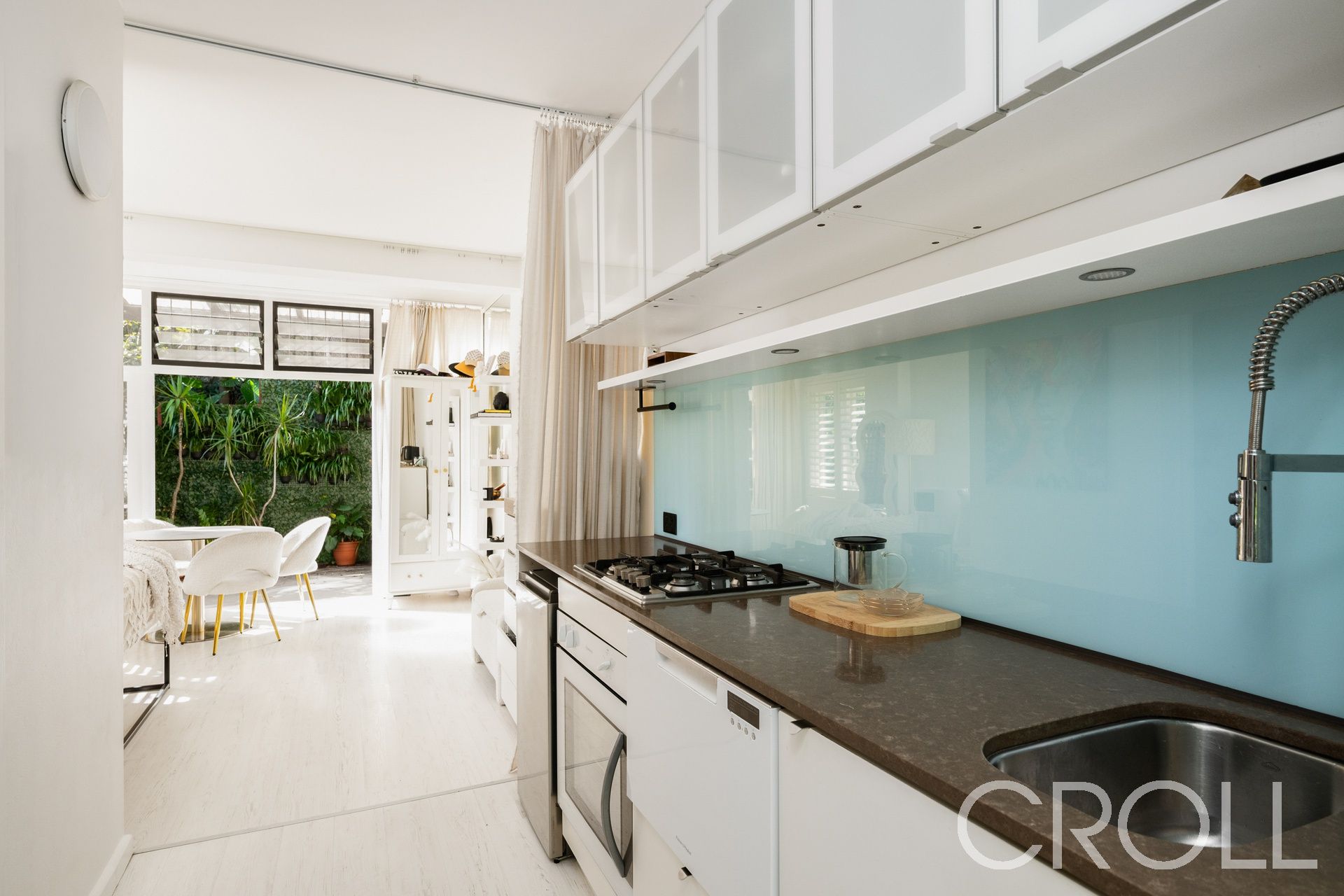 – Living flows to an east-facing courtyard with a leafy outlook