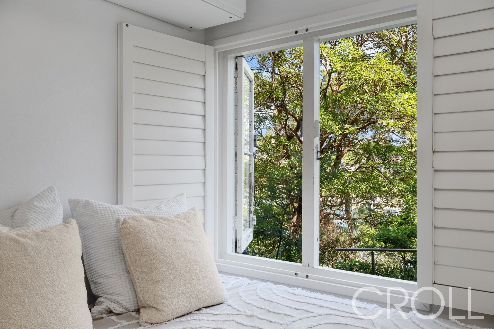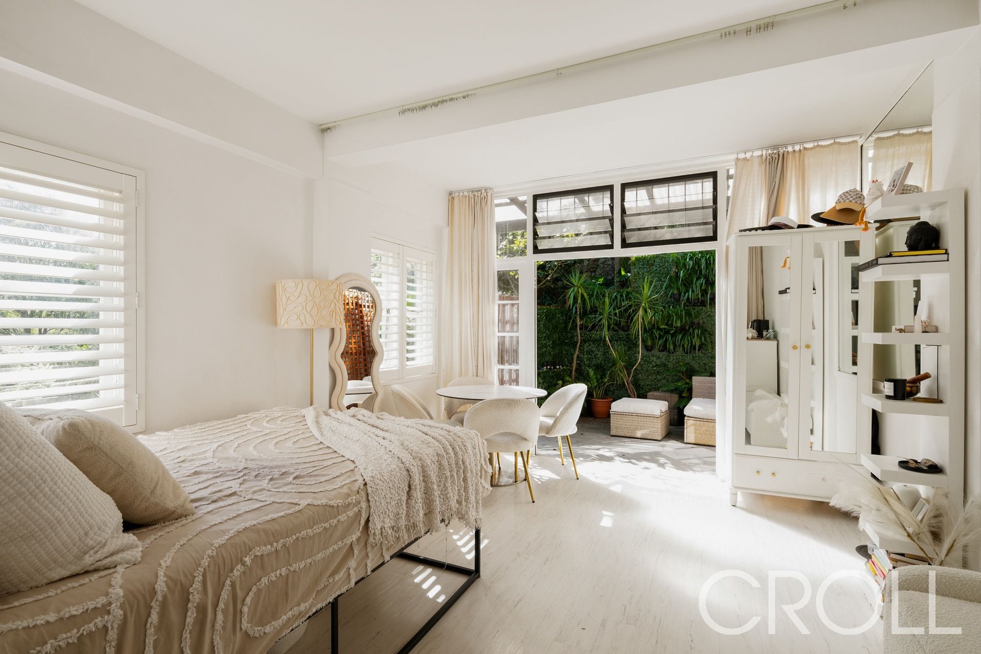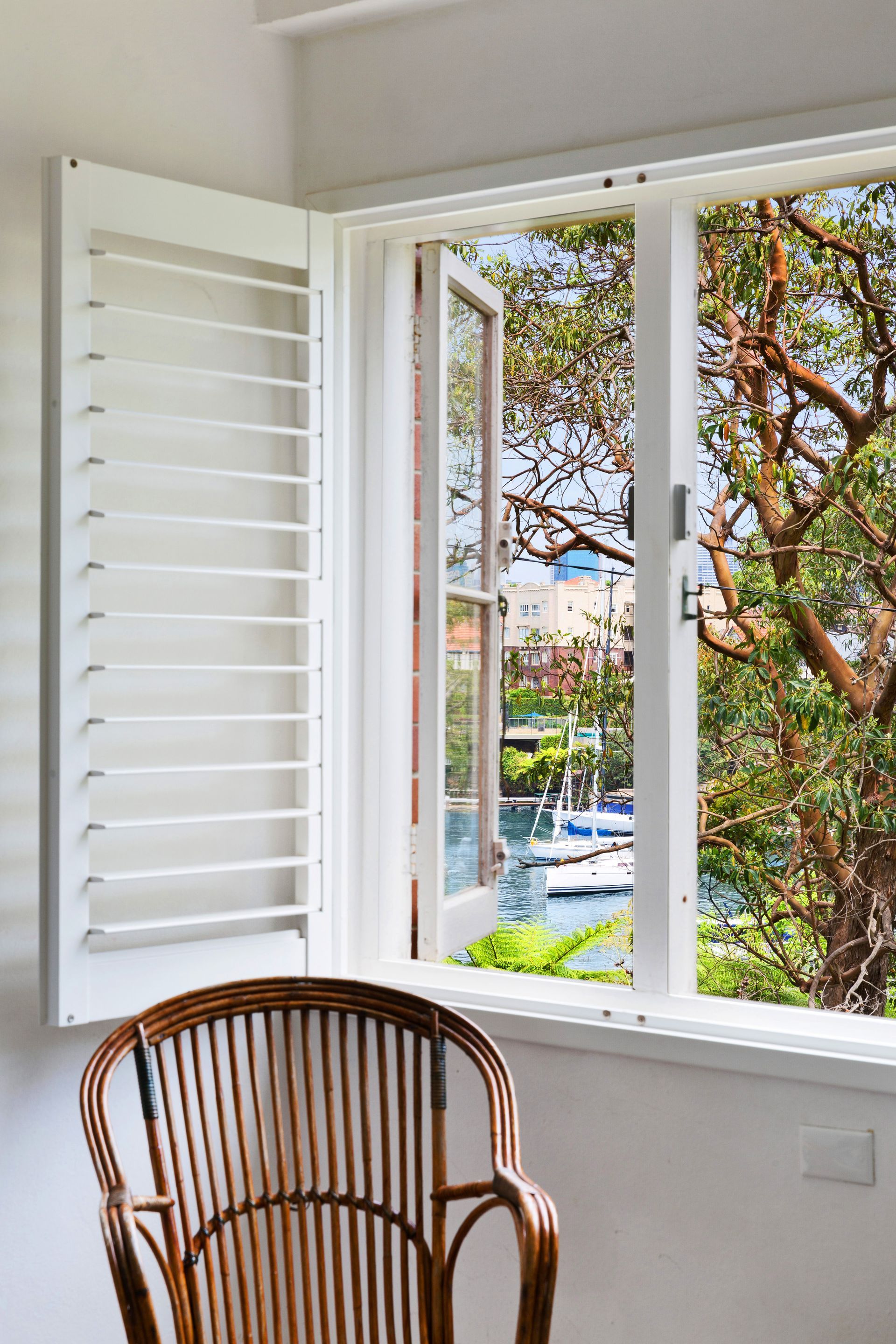 With picturesque outlooks of Cremorne Point Reserve and the pristine waters beyond, this sun-drenched, spacious studio apartment flows seamlessly from the private front entrance courtyard to the verdant rear garden courtyard. Oversized ceiling, full-width elegant French doors invite the outside in, immediately expanding the floorplan and providing a tranquil alfresco outdoor entertaining area.